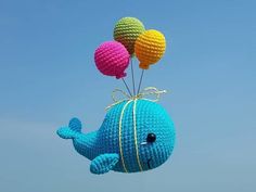 Todays daily new amigurumi free crochet pattern is Amigurumi Flying Whale With Balloons