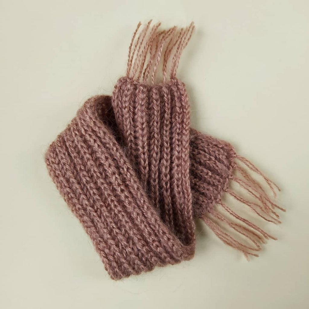 This scarf is knitted in English rib.