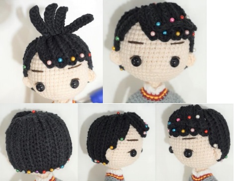 - Yarn ( I use double weight 2 yarn/ 202m ( 220yrd) / 100gr~3.53 oz , fiber content : 60% Combed Cotton 40% Polyester ) : Black, grey, dark grey, red, gold, white. This doll is about 20.5 cm ( 8 inches) if crocheted with double weight 2 yarn, using crochet hook size 2.5mm. You can use the same pattern to make smaller or larger toy by using finer or bulkier yarn.