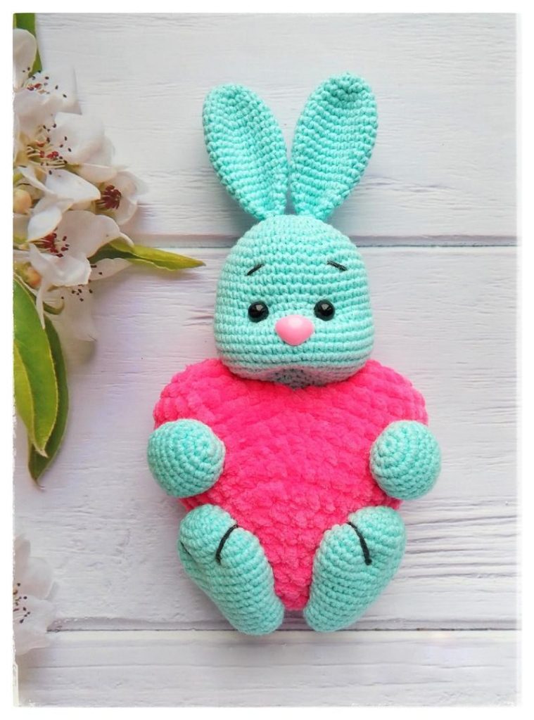 Valentine’s day is a time to make something crochet for those you love. Use this free amigurumi pattern to create a cute bunny holding a heart. The height of the finished bunny with a heart is about 21 cm (8.2″).
