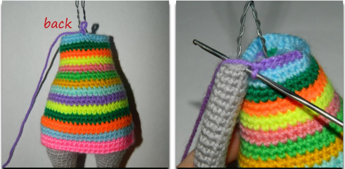 Для закрытия руки сложить деталь пополам и провязать 4 сбн за обе стороны. Обрезать нить,