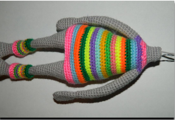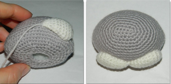 Заканчиваем деталь сс и обрезаем нить, оставляя длинный хвостик для пришивания. Набиваем не