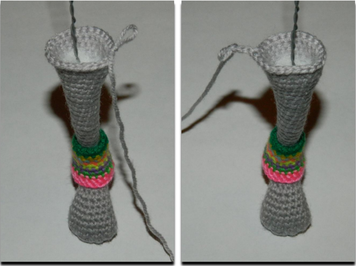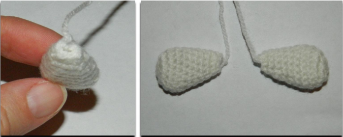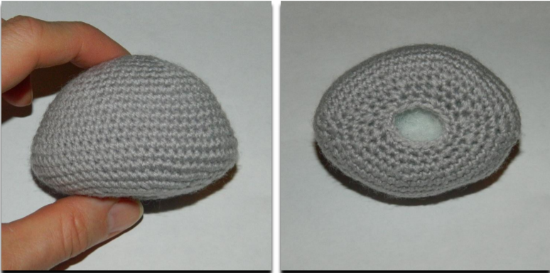 Cut the yarn leaving long tail for assembly. Stuff tight.