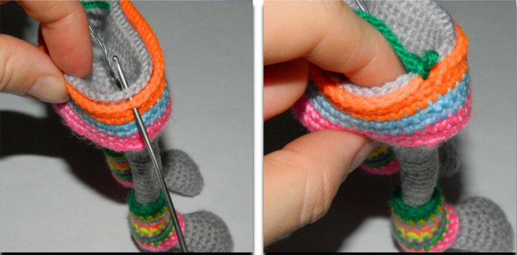 Sew legs using button or thread joint