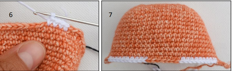 - 6 sc, sl st in 7th st, ch 1, turn