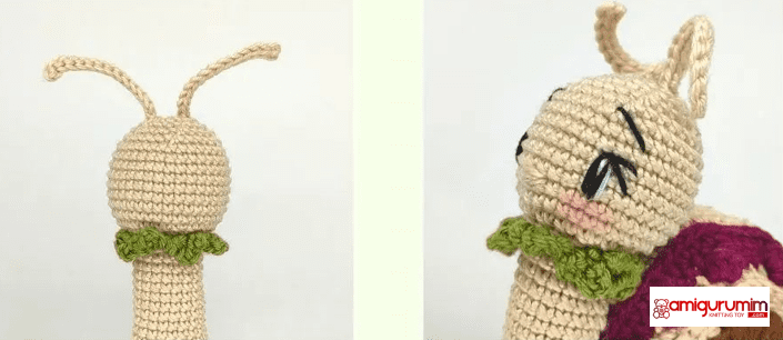 Stuff the head. Now you will crochet the snail’s antennae
