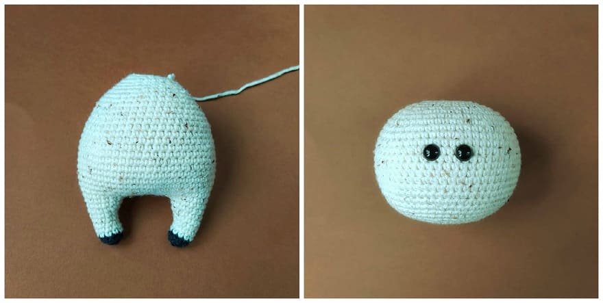 Insert safety eyes between R 11 and R 12 at the distance of 4 stitches from each other.