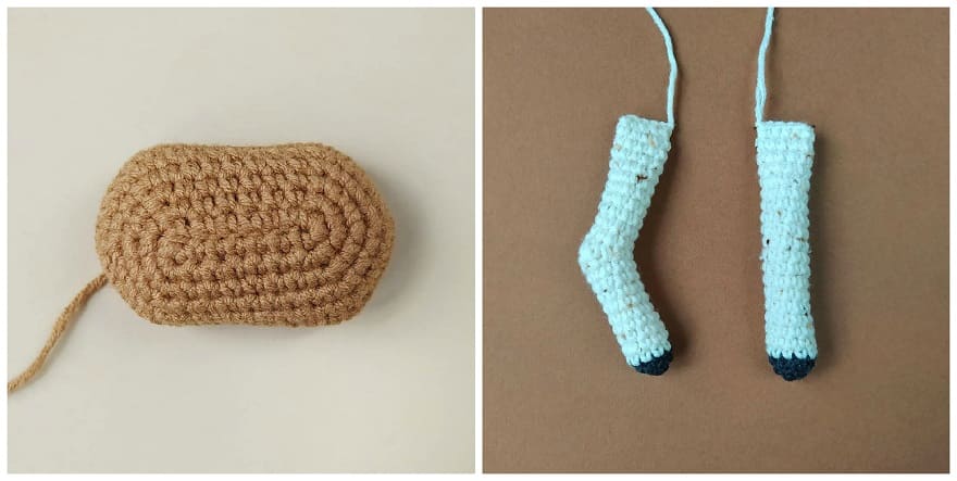 Legs, body are crocheted as a single part. The convex part is belly.