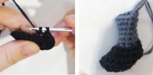 Rnd 23 – Rnd 27: chain 9, sc in the 2nd ch from the hook, 7 hdc, slst on front loops on R3 . (8)