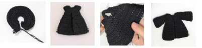 First, you will make an oval by crocheting around the foundation chain. Begin with black yarn. Use crochet hook size 2,5 mm.