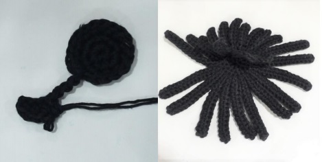 Work in round. Begin with black. Use crochet hook size 3 mm