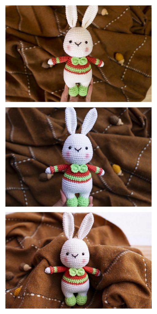 Don’t fasten off after finishing the second leg. Continue crocheting the body starting from the second leg.
