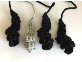 Make three locks with yarn D, and one with yarn E: