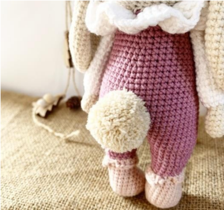 Rnd 31. (3sc, dec)8 (32) Fasten off, leave a long tail for sewing. Insert the eyes in between Rnd 21 and Rnd 22, with 15 stitches apart. Stuff the head with fiberfill. Ear: (Make 2) Rnd 1. MR 6sc (6) Rnd 2. 6inc (12) Rnd 3. 12sc Rnd 4. (sc, inc)6 (18)