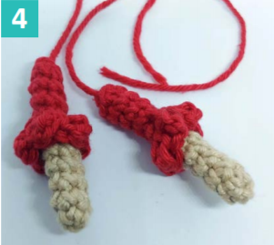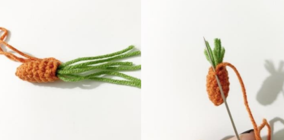 yarn pieces, put the knots inside the carrot and close the carrot head using a yarn