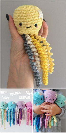 Use 3 pieces of green yarn to make carrot stems. Make knots on the middle of the