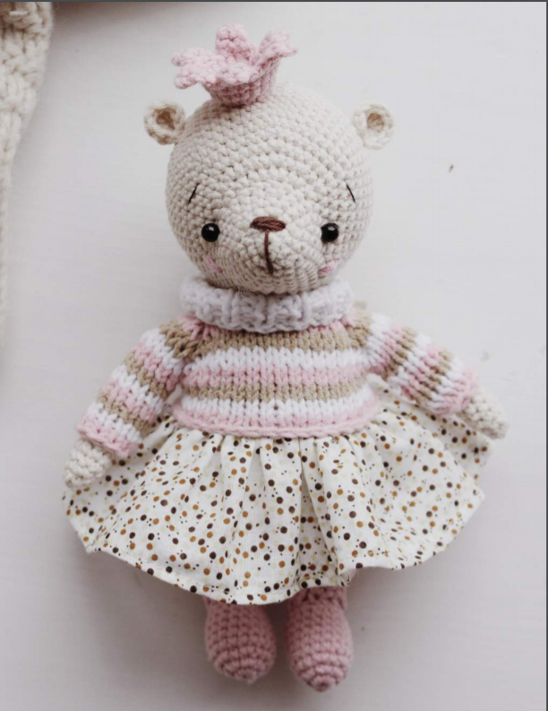 After we knitted top of the dress or cardigan for bear boy, crochet edges around. Make a loop out
